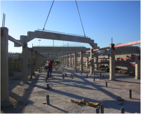 Graderío prefabricado: vigas zancas, gradas, pilares y placa alveolar