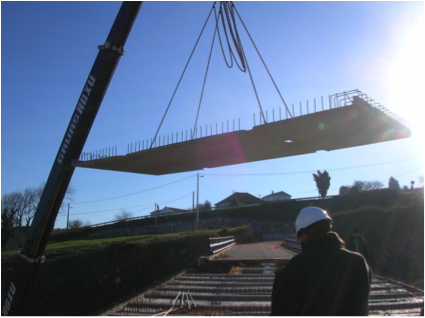 Tablero placa alveolar y estribos tierra armada